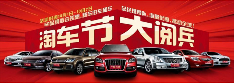 2015年9月25日,中國廣州– 借助“金九銀十的傳統(tǒng)銷售旺季+國慶節(jié)”的雙契機,廣物汽貿于近日宣布推出規(guī)模盛大的“淘車節(jié)”活動。在此次“淘車節(jié)”活動中,廣物汽貿率全國4S店、租車公司、車唯網(wǎng)二手車平臺(www.chevip.com)及平行進口車業(yè)務等旗下代理的50個汽車品牌上千款車型,將各種優(yōu)惠活動進行到底。據(jù)悉,廣物汽貿將釋放平行進口車最高達300萬、B級車最高達10萬元的海量優(yōu)惠,并推出獨具特色的一系列活動,用最實際的折扣力度和豐富多彩的活動回饋消費者。