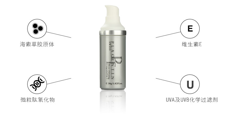 海索草膠原體、維生素E,微粒肽氧化物、UVA及UVB化學(xué)過(guò)濾劑等。